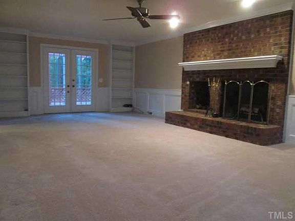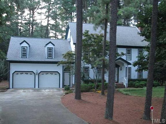 Rare Find in popular North Raleigh community! Wooded .95 acre lot w/ private, fenced backyard. Home features 2 bonus rooms, flex room, office & common areas that flow for family time or entertaining. Huge family room with built-ins & wood burning fireplace. Smooth ceilings, New carpeting & Fresh paint. 2 car attached garage & 2 car detached garage w/ 500 square feet of unfinished potential. Easy access to 540. Near restaurants & shopping. Verify schools. Seller is licensed RE professional. In a cul-de-sac