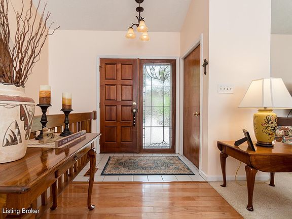Classic best describes this spacious home with a contemporary flair. The home features an open floor plan with a light airy feel. Walk into the formal entry that expands to the great room with a vaulted ceiling, skylights, F/P with gas logs and a dramatic wall of windows across the back that has a view of the private upper deck. You will also find a wet bar perfect for entertaining. Hardwood flooring runs throughout the entry, GR, Dining and Kitchen. The formal dining room has double arched openings and measures 12 x 12. The E-I kitchen is open and bright with white cabinetry and Corian counter tops in soft neutral tones. The upper level deck is assessible from the kitchen, GR, and primary BR. (See Photos) The primary BR features a vaulted ceiling , walk-in closet and private bath