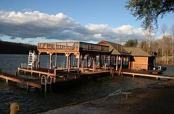 500 FT OF WATERFRONTAGE ON LAK Gorgeous views await you in this private lake retreat. Enjoy your stay at Lake Anna with four large bedrooms and bathrooms. Enormous great room boasts pool table, sectional and large TV. Separate game room only steps away with pinball, arcade games, and poker table. Fantastic boathouse with 6 electric lefts and 7 boat slips. Tiki bar with hydraullic doors make for easy entertaining. Guests will love the sandy beach and roof top deck.
