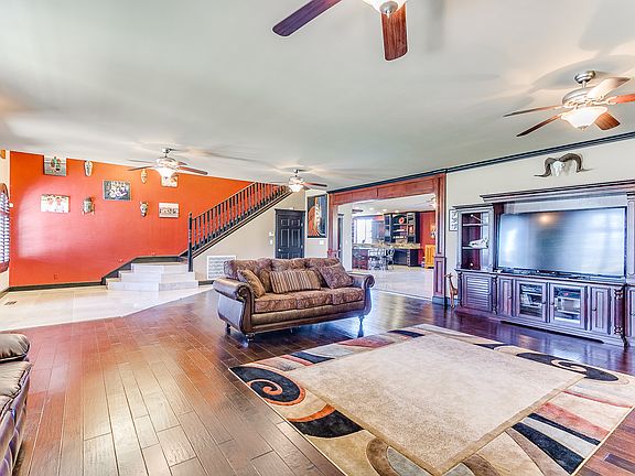 Home is amazing! Beautiful 5 acres with fruit trees, wildlife, and a stunning view. 4 bedrooms, 2 full bathrooms, and 2 half bathrooms. Game room and theater room. Master suite has 2 walk in closets and a walk out to the 2nd floor deck. Massive rooms throughout. A chef would be right at home in this kitchen. Kitchen has full size freezer and refrigerator, center island with bar stools, large stove, granite counter tops, custom cabinets, and more. Other features included: in ground pool, storage building, basketball court, mature fruit trees. Call today for a private showing.