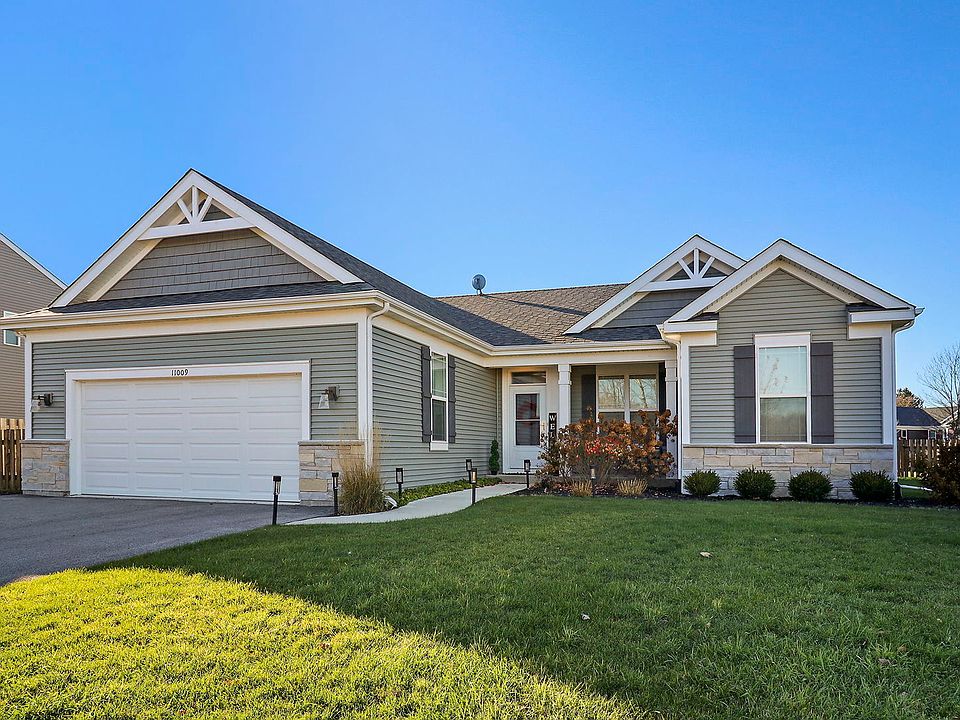 Almost NEW RANCH (2021) Woodland Meadows 3 bedrooms, 2 full baths, 2.5 car garage ranch. Sitting on a professionally landscaped, fenced-in corner lot, this house has utmost curb appeal. A private, covered porch invites you in. A light, bright, 9' ceilings throughout, 'open concept' home awaits you. Fall in love with the clean, sleek lines and eye-catching light fixtures, its neutral gray/white palette with white trim/windows/doors, and the extra deep windows/sliders streaming the natural light. The main level showcases LVP flooring throughout. The kitchen has a walk-in pantry and is surrounded with white 42" cabinets with soffits and soft-close drawers, granite countertops, and all-matching Whirlpool Stainless Steel appliances. An island with a sit up bar is in the heart of this level. The dining area has sliders off to a newly installed wooden deck. The primary en suite on one end lives large with a full glass shower bath, walk-in with a California Closets installed, as well as a linen closet. 2 bedrooms on the opposite end sit on either side of a full bath, are carpeted, and have large closets. The full, unfinished, insulated basement has a sump pump, radon mitigation system, large egress windows, and is ready for you to design/finish to your taste. Move-in, picture-perfect ready, with a quick close possible/preferred.**Immediate access to 173/47, 10 minutes into Richmond/Spring Grove/Lake Geneva, and within 10 miles OR LESS to the following: Oak Grove Golf Course, Lake Tombeau, Rushwood Park, Geneva Lake Shore Path, Groceries/Gas/Movies/Walgreens/Cleaners/Medical.