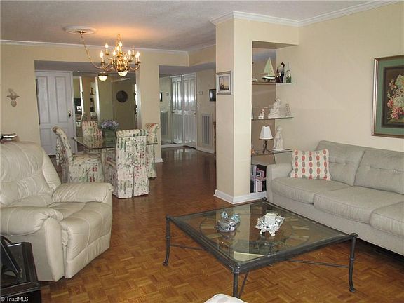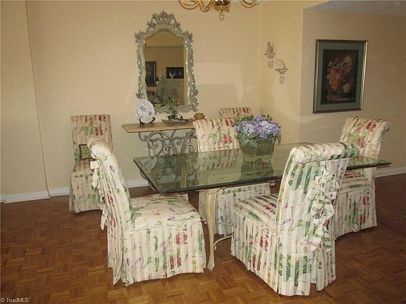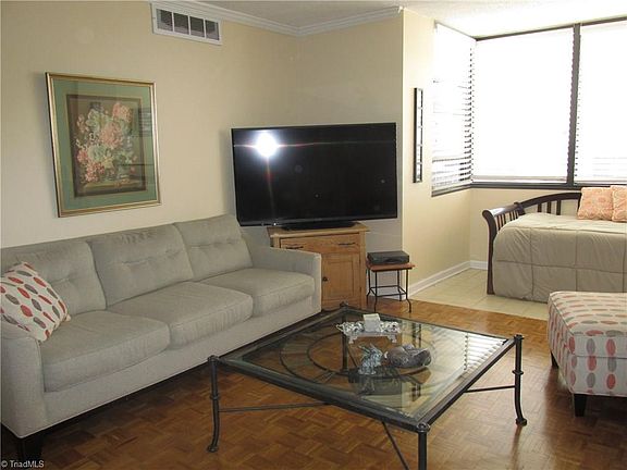 Fabulous corner unit in Hampshire Towers. Unit remodeled to expand the designer kitchen with space for office. Newly refinished hardwood floors, interior paint and new master bath. Open floor plan. HOA fee covers utilities plus cable & wi-fi service. Hampshire Towers is the only high rise in downtown Greensboro with a pool. Other amenities include fitness center, library/card room, lounge, business center & 24-hour front desk coverage. Convenient to entertainment, restaurants, & medical facilities.