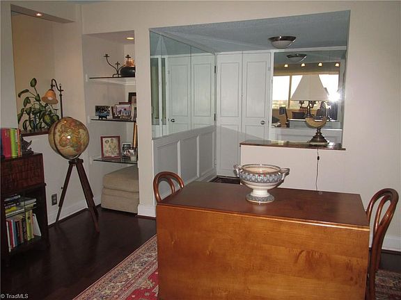 Spectacular views from 14th floor Hampshire Towers penthouse. Open floor plan with hardwood floors features entry, living room with built-in cabinetry, dining room, spacious game room with custom wet bar. Eat-in kitchen with updated cabinets and appliances. Granite countertops. Master bedroom with updated en-suite has separate shower. Separate spa room with jetted tub. Lots of storage in this 3BR/3BA unit. Pool, fitness center, lounge, library - all in one convenient location. 24-hour front desk coverage.