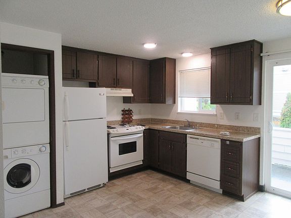Upstairs 2 bedroom, 1 bath apartment with views of the bay and mountains. Range, refrigerator, dishwasher, washer and dryer. Deck off dining area. Electric heat. Water, Sewer, Garbage & Yard Care Paid. No smoke/no pets. $1195/mo -- First + $1195 deposit -- Lease Water, sewer, garbage and yard care paid.