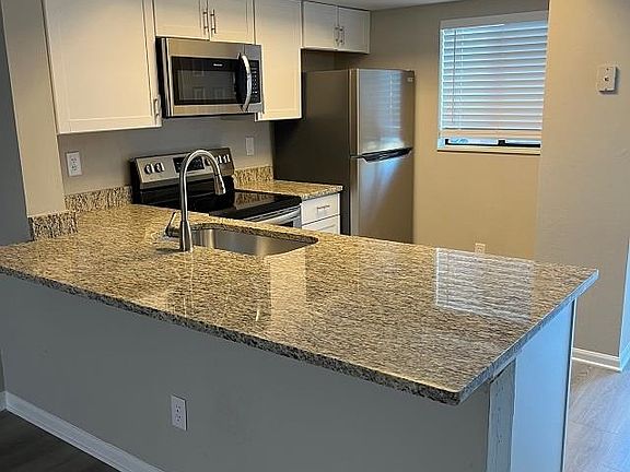 - Features: Breakfast Bar, Stainless Steel Appliances, Solid Surface Counters