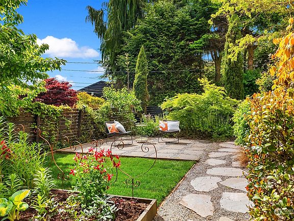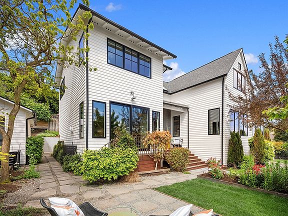 Beautiful contemporary home meticulously rebuilt with attention to details & finishes. Perched on hill, w/views of Lake WA & Bellevue skyline, gorgeous landscaping, 4bd+/3ba+, this inviting home has it all. Formal living rm, spacious Great Room open to entertaining kitchen+private yard with built-in gas firepit. Dramatic custom steel stairways, exposed wood beams, columns, wide plank flrs, huge windows to take in views. Primary suite: walk -in closet, soaking tub, private deck w/view. Lower level: bdrm, bath and bonus room. Two car detached garage w/workbench and power. Thoughtfully landscaped yard with tons of garden space, blooms thruout the year, bee ready, and greenhouse. Easy access to parks, lake, neighborhood restaurants & cafes.