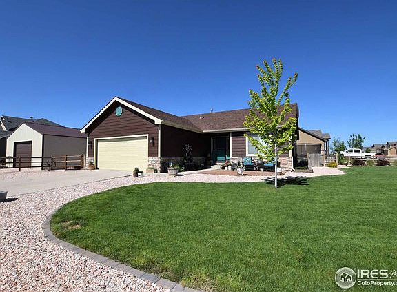 almost new 32 x 40 shop with concrete floor, 220 electric, 3 bedroom ranch style home on a .33 acre corner lot, shows better than new, granite in kitchen and bath, upgraded laminate flooring, open floor plan. Beautifully Landscaped, Non potable water through the HOA billed monthly April-September $35.00 average monthly. Very lenient HOA