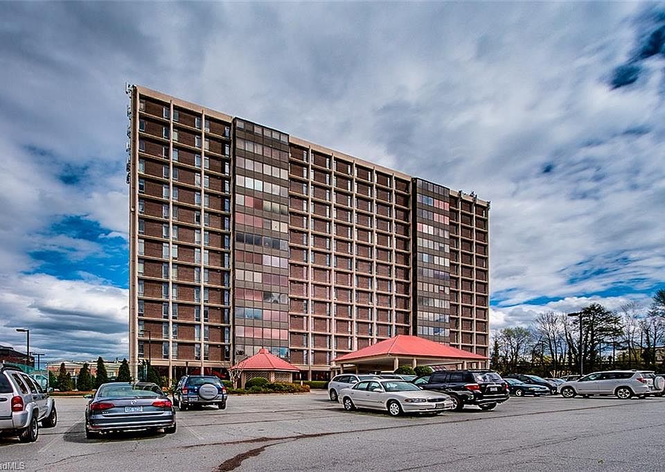 Fabulous corner unit on the sixth floor with panoramic views of dynamic downtown Greensboro! Beautiful parquet wood flooring,new kitchen flooring, plus fresh paint. Kitchen opened up to include a breakfast/tv area. Master has walk in closet and triple windows. A real bargain, HOA fees INCLUDE ALL UTILITIES, even cable, wi fi, pool, fitness center, library/card room, business center, lounge,AND 24 hr.front desk coverage! Leave the car and walk! just steps away from dining, entertainment, & medical centers.