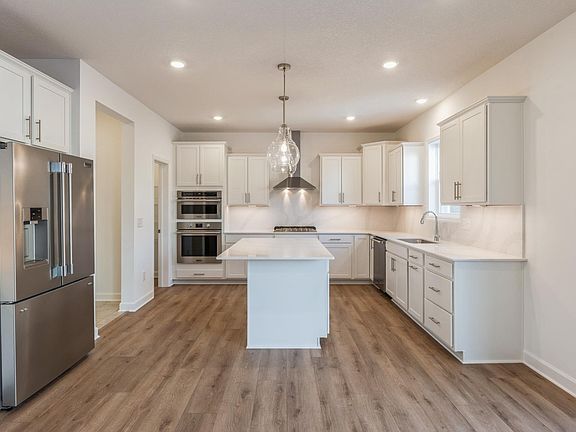 Home is under construction and will be complete in February! Ask about savings up to $5,000 when using Seller's Preferred Lender! This spacious two-story home features an open-concept layout with the kitchen overlooking the dining room and Great Room. On the second floor are the luxe owner's suite and three secondary bedrooms — all with walk-in closets — while a central loft offers versatility. Optional main level bedroom. This home also features a stunning gourmet vented gas cooking/double ovens kitchen cabinetry with a greatly sized central quartz counter island, a private spa-like shower/bath to complement the owner's suite, secondary bedrooms with roomy ALL walk in closets. Stunning home with massive Loft Upstairs, Walk-in Closets, Soaking Tub/Shower all in Majestic Highlands at Settler's Ridge. This charming community just minutes away within proximity to major hospitals/MSP airport/Mall of America, popular restaurants, bars, shopping, entertainment, and more!