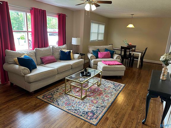 ONLY 1.5 MILES TO JACKSONVILLE STATE UNIVERSITY!!! The perfect starter home or college house!! 4BR, 2BA, hardwood/tile/LVP throughout, comes equipped with all appliances to include refrigerator and washer/dryer. Isolated master w/walk in closet and separate entrance, large family room and dining room with gorgeous hardwood floors, kitchen with tile, dishwasher, and recent stove and microwave, 3 additional bedrooms all have hardwood and are spacious, hall bath with tile, endless hot water, lovely corner lot, firepit area out back, also has extra parking!!