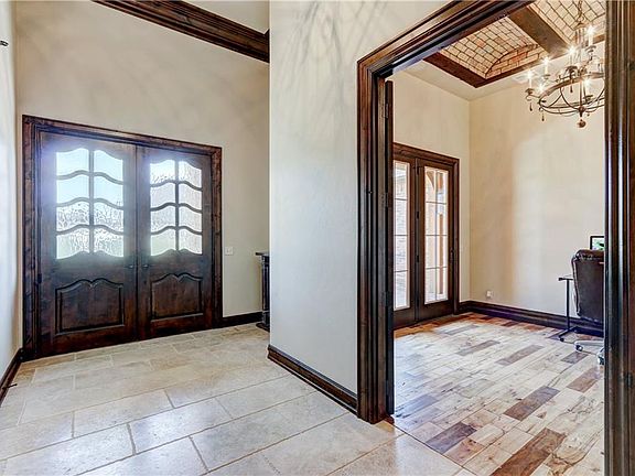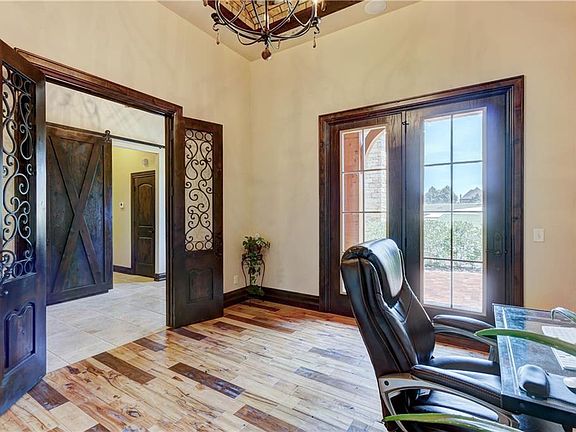 Parade of Homes award winner! This beautiful home welcomes you with a grand entrance of high ceilings and travertine floors pouring into an open kitchen and main living area, complete with formal dinning, true mason fireplace in living area, and huge kitchen island with breakfast bar that sits six. All bedrooms are downstairs, with game room and complete theater room (and half bath) waiting to entertain with wet bar area upstairs! the Master bathroom is truly something to see for yourself, with walk in closet connected to laundry room. Study with rolling barrel brick ceiling comes with French doors opening up to private patio, and a control center sits just off the kitchen pantry for important papers and mail drop/mud bench spot. Three bedrooms await down a hall, one with full en suite bath, the other two share a generous J&J full bath with high end finishes. Granite countertops throughout, marble in master bathroom. Garage space for days with 3 together, plus 1 separate.