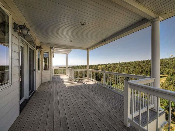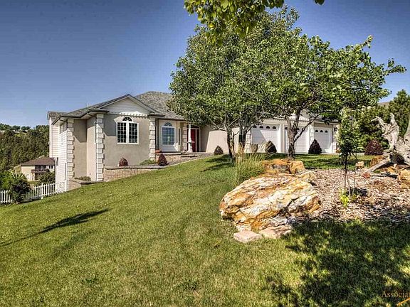One owner ranch style home located on a beautiful treed lot with panoramic views of the Black Hills and Southeast Rapid City! This home has a great floor plan with a hardwood floor entry leading into an expansive living room with beautiful views! The formal dining room is highlighted with sconce lighting and chandelier with Hunter Douglas blinds. The kitchen features oak cabinetry with an abundance of storage and counter space with a breakfast nook nearby! Hardwood floors are featured in the kitchen and the nearby Hearth room with a gas fireplace! Access off the breakfast nook is provided to the large redwood covers deck! Two large bedrooms with a shared full bath are located near the kitchen. The master bedroom suite is located on the west end of the main floor which features double vanities, jetted tub, shower, fabulous closet with organizers, private access to the deck and the laundry room is accessed from the master closet.