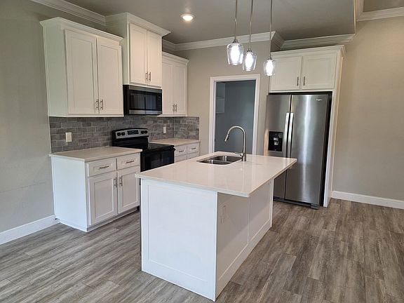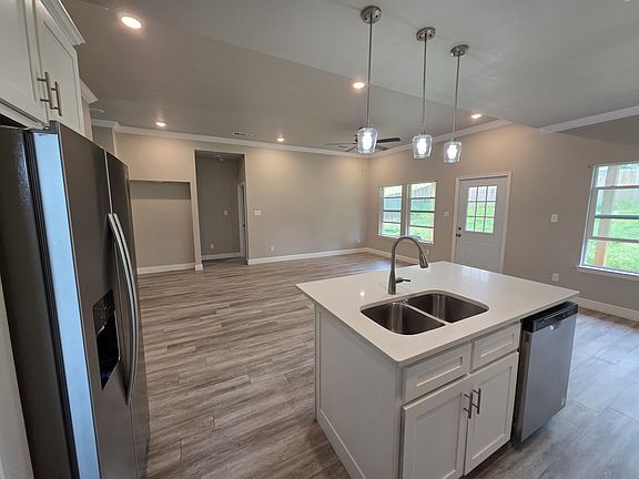 - Exterior features: 6 ft wooden privacy fence, 9ft + ceilings, Brand new home built in 2023, Crown molding, Custom wooden cabinets, Quartz Countertops, Recessed lighting