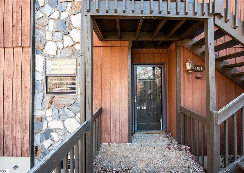 This charming lower-level unit is perfect for investors or first-time home buyers! Enjoy a bright, functional kitchen with ample counter space and a convenient pass-through to the spacious living room—complete with wood beam ceilings, a cozy fireplace, and built-in shelving for added character and storage.Recent upgrades include a new HVAC system and stove (installed in 2025), offering peace of mind and energy efficiency.The primary suite features a double vanity, and the in-unit laundry is smartly tucked away in the hall for easy access. Step outside to a semi-private back deck—perfect for relaxing or entertaining.Located just minutes from Wake Forest University, downtown Winston-Salem, and a variety of local shops and restaurants, this condo offers the perfect blend of comfort and convenience.
