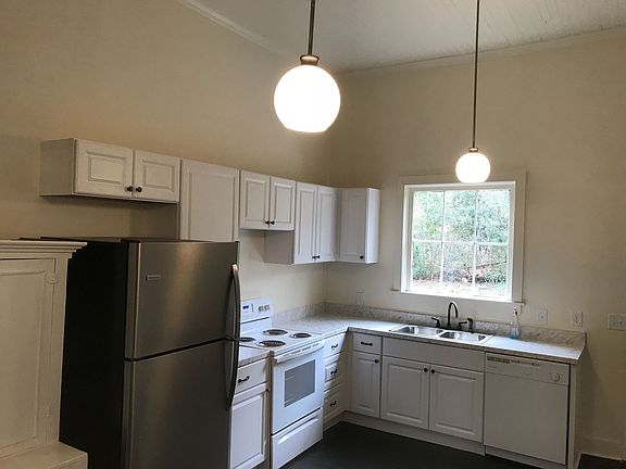 Immaculately restored historic early 1900's unit with 2 bedrooms and 1 bath. The house is renovated with all new lighting, restored historic hardwood floors, and other unique detail features restored celebrating and maintaining the history of Opelika. Large kitchen with new appliances, new bathroom with ceramic tile, large dining room, and large living room. Incredible high ceiling and large historic windows. The perfect mixture of new and established mature landscaping.