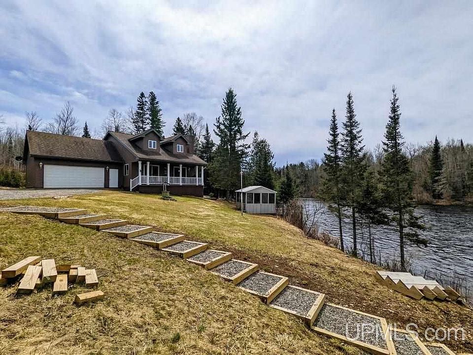 Tranquility'seclusion'serenity. Imagine: a beautiful Cape Cod style home sitting on over 1,000 feet of private frontage of The Paint River, backed up by almost 35 acres of U.P. woodlands adjacent to additional State of Michigan lands. Whether you're looking for your forever home, a personal retreat second to none or an incredible Airbnb investment property, this piece of 'God's Country' is unique. As you meander down the private road you'll be greeted by breathtaking views of the river valley looking across at thousands of acres of undeveloped forestlands. Launch your water adventures down the stairs leading to the river's edge where canoeing, kayaking and fishing of this wilderness watercourse will leave you wanting more. End your day watching the sunset across the valley rocking on the front porch or gathered around the fire-ring listening to the wind through the pines and the gentle whisper of the water rolling by. Inside you'll find a main floor bedroom and bath just off the open concept kitchen/dining/living area with vaulted ceiling and a stone, gas fueled fireplace that offers ambiance as well as heat. The open concept loft area features its own full bath and over-sized room for many guests that could be partitioned off for more private quarters if desired. The finished basement boasts the family game room with knotty pine surrounding the card table, pool table and media area. This home comes completely furnished with new appliances, living room and bedroom furniture as well as the family room furnishings. Outside, you'll love the fully screened riverside gazebo for that morning cup of coffee as well as an older shed behind the house'perfect for use a a garden shed or convert it to a sauna! Aside from the attached insulated & heated garage there's added storage in the 24x30 pole building with concrete floor & power as well as a 24x28 carport'perfect for all your adventure toy storage. You'll never want to leave once you're here.