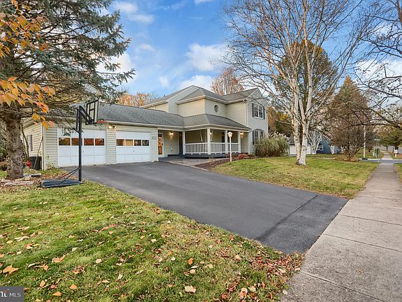 Nestled in the coveted Greentree neighborhood, this captivating two-story residence sits proudly across from Orchard Park. This home boasts a visually appealing exterior with a stamped concrete front sidewalk/patio, enchanting landscaping, and an inviting wrap-around front porch. Step inside to discover a meticulously maintained interior that welcomes you with a charming foyer. The living room showcases a bay window and hardwood flooring, while the formal dining room features chair rail details and a sliding glass door leading to the rear deck. Enter into the sun-soaked kitchen that is adorned with Quartz countertops, stainless steel appliances, a breakfast bar, and a bay window in the cozy dining nook. Adding to the allure, the den charms with a vaulted wood & groove ceiling and a skylight. The spacious family room is a retreat with a wood-burning fireplace for you to sit back and relax. Practical first-floor laundry/mudroom. Leading up to the second floor, the owner's suite awaits with a large closet featuring built-ins and a full bathroom. Two additional bedrooms and another full bathroom complete the second level. Outside, the rear deck provides a perfect vantage point to enjoy the serene, tree-shaded fenced-in backyard. This residence is ideally located, offering easy access to schools, downtown State College, and Penn State University. Experience the epitome of comfortable and convenient living in this Greentree gem!