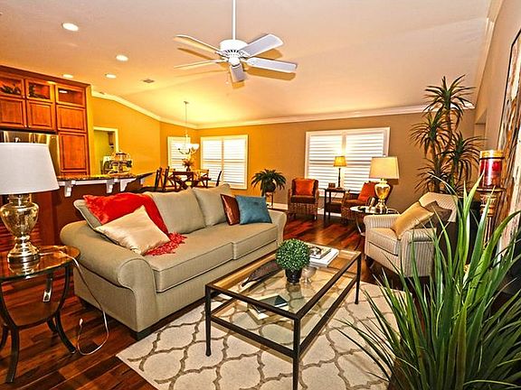 This is the PREMIER of all Courtyards! No attention to detail was left out. First of all, this HOME has 2 driveways - one with a 1 1/2 car garage, the other with a GOLF CART GARAGE, positioned on a Corner Lot! Now, be prepared to be amazed as you step inside through the Leaded Glass entry. Gorgeous BRAZILIAN PECAN HARDWOOD Floors throughout (except Tile in wet areas), CUSTOM CHOCOLATE MAPLE CABINETS in Kitchen and Both Baths (with extra cabinets and sit-down vanity in Guest Bath), ELEGANT GRANITE COUNTERTOPS throughout, HIGH-END SS APPL., PLANTATION SHUTTERS, CROWN MOLDING, SOLAR TUBES, APRILAIRE A/C FILTRATION SYSTEM, CUSTOM CLOSETS and a NEW ROOF in 2014! The FLORIDA ROOM leads you to the approx. 1000 sq. ft. Outdoor Patio with Acrylic Flooring and Birdcage to enjoy a CUSTOM WATER FEATURE, TROPICAL LANDSCAPING, GRILLING STATION and extensive Outdoor Lighting - YOU MUST SEE THIS HOME AT NIGHT! It is impossible to list all the many upgrades which the seller thoughtfully put into this one-of-a-kind Villa, but to give you an idea - there are over $170,000 in upgrades! Make sure to put this on your short list - you won't be disappointed. Are you ready to make this spectacular home yours, before someone else beats you to it? Tax line reflects actual property taxes. CDD line reflects combination of annual bond $878.12, annual maintenance $298.71, annual fire district $81 for a total of $1,257.83. Bond Balance $10,644.53. Seller is even including a 1-year home warranty plan.