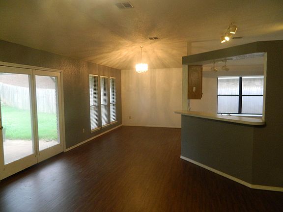 Well-maintained home is a real jewel. Features include New carpet, New wood plank laminate flooring in family and dining rooms, ceramic tile in kitchen, Microwave oven, gas stove, garbage disposal, double stainless sink, whirlpool tub in Master, two vanities, two walk-in closets, ceramic gas logs in fireplace and fenced back yard. Great neighborhood in Edmond school district. Tenant is responsible for utilities and yard maintenance