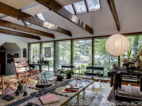 Contemporary meets Cape Cod in this unique architect-designed home with studio. Elegant brick driveway enters to a 16-foot gallery leading from the original home to a 2-level studio space, which features a floating floor platform, floor-to-ceiling windows & skylights, exposed beams, & impressive uplighting. A spiral staircase links the hovering studio loft & unfinished basement with workbench & storage. The traditional home was remodeled with attention to quality & a cozy, contemporary design. Natural light fills the open dining & living area. Exposed beams, cathedral ceilings, & built-ins highlight the upstairs bedrooms. Both bathrooms offer modern updates. Mature trees & landscaping add to the elegance of this corner lot property, which sits near schools & parks. New furnace & a/c.