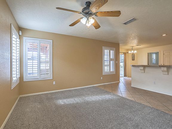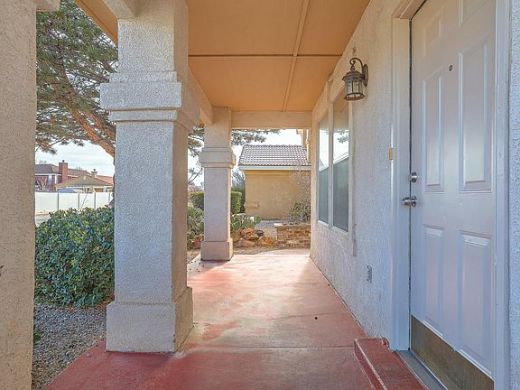 Fantastic opportunity to own a 4 BR home in Willow wood, w wide sidewalks, hiking trails & access to Manzano Mesa multicultural center! This home features an open layout w two living areas & a double-sided fireplace on the main level, along with a kitchen w a new SS dishwasher, a breakfast nook & westward views. All bedrooms are upstairs, generously-sized, w new carpet, most with walk-in closets &ceiling fans. The hall bathroom sports new tile flooring and shares a door with one of the bedrooms. The primary suite has two walk-in closets plus a luxurious bathroom w a garden tub and separate shower. The private backyard has amazing westward views + a covered patio made of big wooden beams, & a nook w a fridge & granite countertop, & a large storage shed