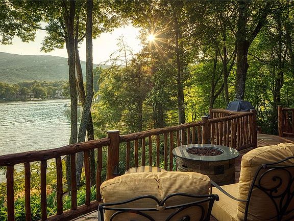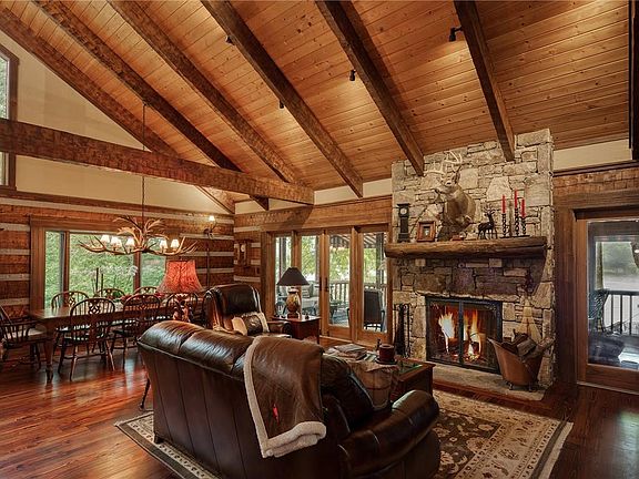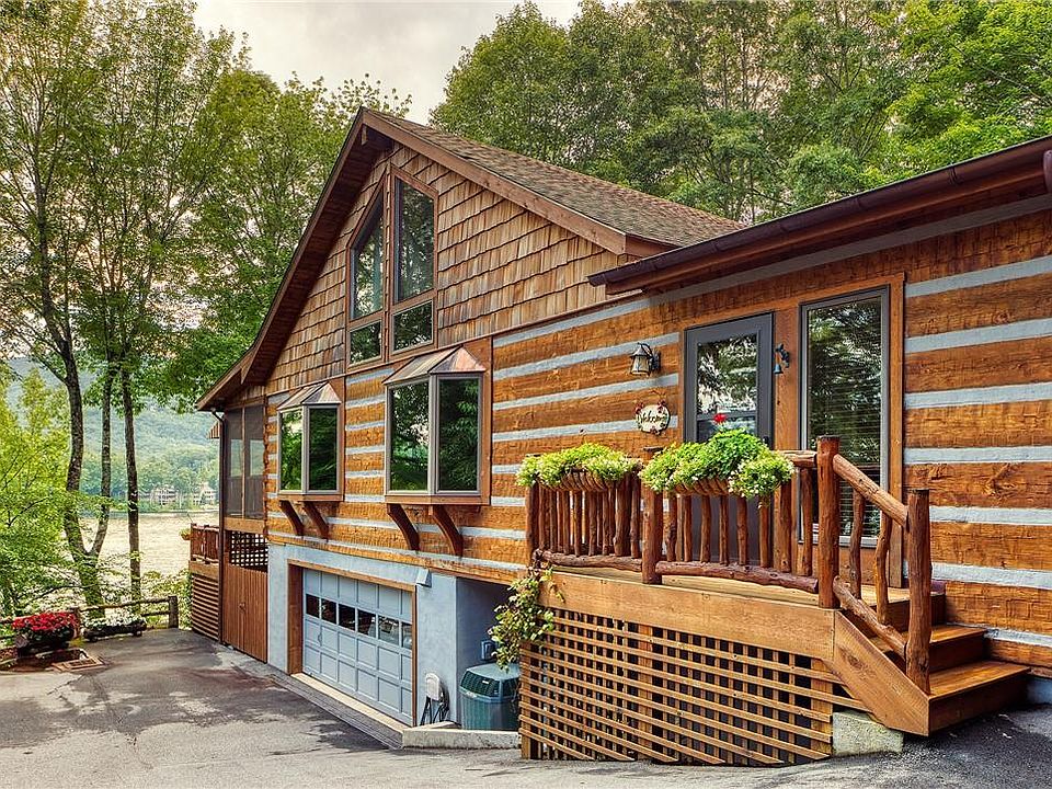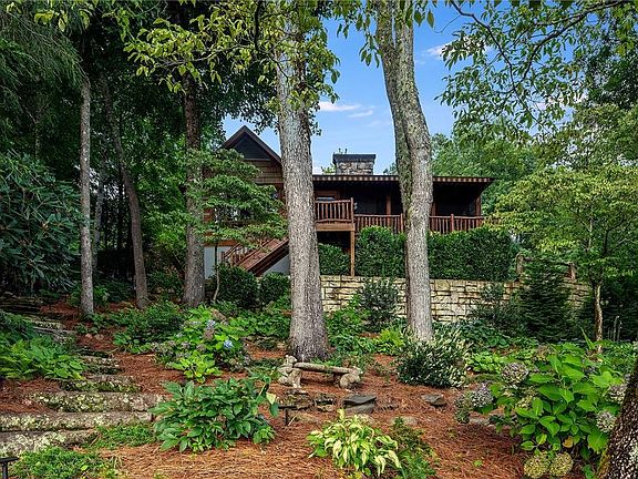 This exceptional lake property features a totally renovated log home with exceptional views up Lake Toxaway and to the mountains. The spacious lot features a boat house and dock, rock seawall, stone patio and fire pit. This turn key home features, on the main level, an open floor plan with vaulted ceilings, a spacious dining area that opens to the great room, master and guest bedroom suites, study, powder bath, laundry room, walk-in pantry and convenient covered parking just outside the front door. The open kitchen is perfect for entertaining, boasting Wormy Chestnut cabinets, a large island, top of the line appliances, and lots of cabinetry for storage.  The living space extends to a lovely screen porch and deck. The upper level features an open loft/pool room, and the lower level features a guest suite, media room, workshop and 2 car garage with ample storage. This fabulous lake property with custom designed furnishings has everything you could want, offered fully furnished.