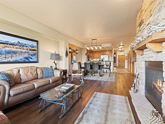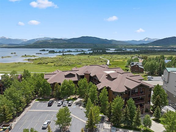 Seize this rare opportunity to own a lakefront mountain residence, perfectly situated in a front-row location on Lake Dillon in Frisco. Bask in the beauty of summer sunrises over the majestic 14,000-foot peaks, reflected in the tranquil waters. The great room and primary bedroom feature large windows that perfectly frame these stunning surroundings. This well-appointed 2-bedroom plus den boasts luxurious finishes, including granite countertops, stainless steel appliances, alder doors, cabinets, and trim, along with custom painting and a gas fireplace for added comfort. Residents enjoy an array of exceptional amenities, including lake-view hot tubs, outdoor patio area, elevator, ski lockers, and heated underground parking garage. Enjoy the convenient proximity to shopping, restaurants, the Frisco Marina and Main Street, plus, you're just steps away from the scenic paved recreation trail, perfect for exploring all that Summit County has to offer.