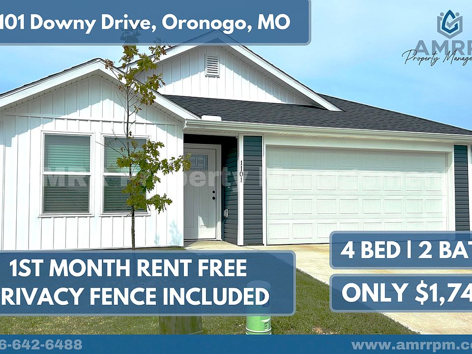 SPECIAL: 1st Month Free AND owner will install professional-grade wood privacy fence with an 18+ month lease! Welcome to your new home with AMRR Property Management, featuring 1,392 square feet of living space, 4 bedrooms, 2 baths, and a 2 car garage. This new construction home is located in a new development in Oronogo, Missouri, located in the Webb City school district and it has everything you need a rental. The kitchen features a stove, microwave, dishwasher, custom cabinets, a stainless steel fridge, and waterproof vinyl flooring that extends throughout the home, which means NO carpet whatsoever. The backyard includes a relaxing patio and a spacious grass backyard. Length of lease can be between 12 and 24 months. Utilities are ALWAYS the responsibility of the tenant, unless otherwise advertised. Tenants are responsible for all lawn care and maintenance during tenancy, unless otherwise advertised. Security deposits are required for most properties, but we offer various deposit amounts and payment options, which are determined during the application process. Application fees are generally $45 but few can waive the application fee if an application is filled out within 24 hours after you complete a scheduled showing with one of our leasing agents. Normally, only 2 pets are allowed per property and we charge a one-time pet fee of $250 per pet, with no breed restrictions or weight limits, unless otherwise advertised. No smoking of any kind is allowed inside the property or garage.