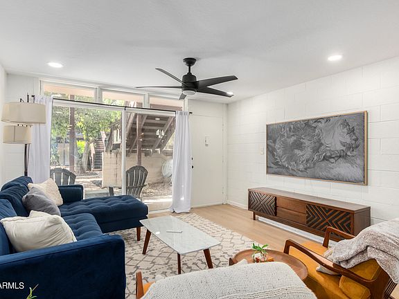 Move into this adorable residence in the highly sought-after The Place Community! You'll love the chic interior showcasing recessed and decorative light fixtures, illuminating the captivating open floor plan. Fully remodeled with upgraded finishes, wood shaker cabinetry, a farmhouse sink, quartz counters, stylish tile backsplash, a pantry & a breakfast bar. Brand new AC unit, ceiling fans, and smart thermostat. This unit has two sizable bedrooms, both with beautifully redone bathrooms. Gorgeous new flooring throughout. Perfect starter home or investment property. All the work has been done for you! Desirable North Central location close to the Uptown, the Biltmore and Arcadia neighborhoods with all the restaurants, best shopping spots, & more. What's not to like? This gem is the one.