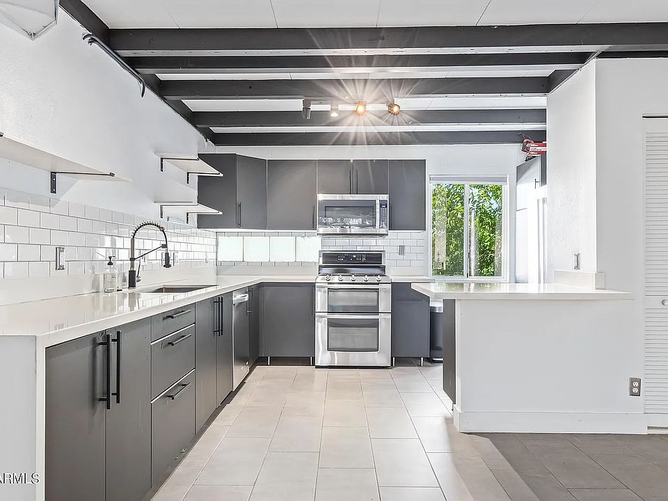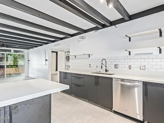The Place is a Midcentury modern complex nestled in the heart of N. Central. This newly renovated private unit condo features 2 bedrooms, 2 bathrooms, in-unit stackable washer/dryer, gas stove and plenty of closet space. The stunning kitchen showcases sleek cabinets, stainless steal appliances, Quartz counter tops and opens to a very generous family room with exposed wood ceiling beams and floor to ceiling windows . The oversized private balcony overlooks a quiet charming courtyard and huge community pool. Unit has 1 dedicated covered parking space and plenty of guest parking as well! Walk/Bike to all the best Central Phoenix has to offer and is close proximity to desirable Biltmore, Camelback Colonnade, shopping, dining, fitness, hiking trails & easy access to freeways. Ready to be leased now. 1 year minimum. 2 month notice if you're not renewing your lease. No smoking. Rental insurance is required. Tenant responsible for all utilities. Water and trash are included in rent. 1 month rent for deposit plus first month rent when moving in. $500 security deposit to hold unit, this amount will be deducted from your total deposit.