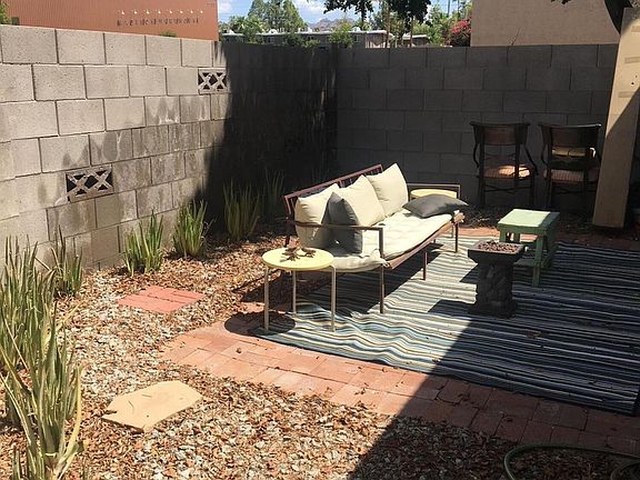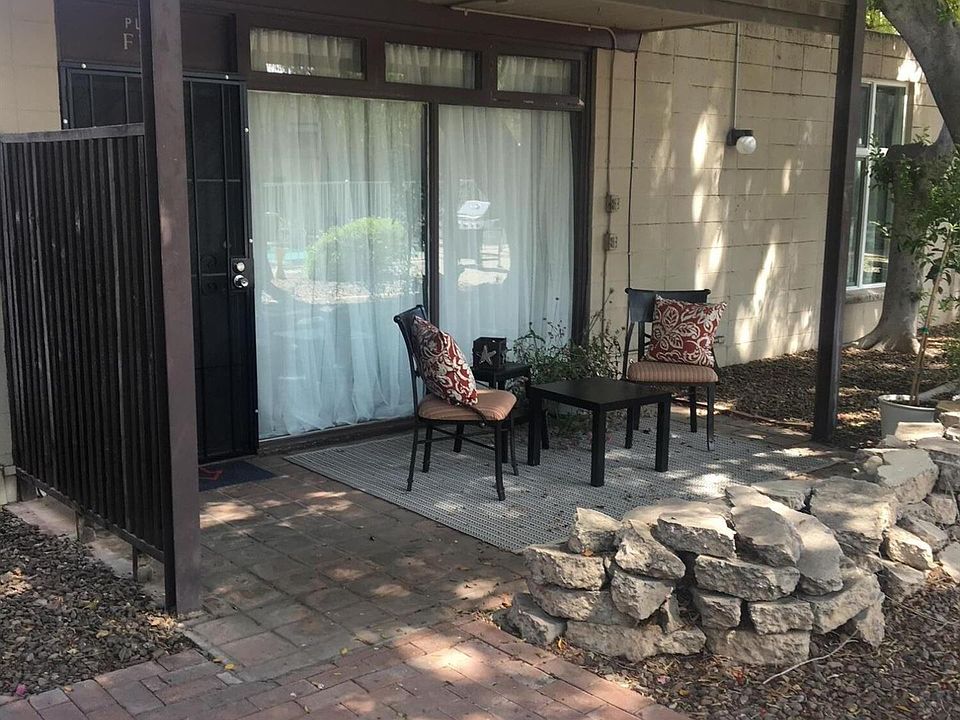 Mid-Century vibe to the Max!-Sandblasted exterior with wood/metal screens, large mature trees & floor to ceiling windows provide an oasis in Uptown Phoenix--This unit is single level, has the largest private patio in community off the rear with private entry from primary bedroom-Front patio sits poolside -Open floor plan with 2 on-suites-In unit laundry, remodeled kitchen with Island for prep and storage- Nice pantry space too-Great room/kitchen has skylights for natural light-Fabulous real Wood beamed hi-ceilings THROUGHOUT-ample parking-North/South facing--Community readying for paint job of new wood fencing--extra private storage closet is on property for bikes etc-seller also redid and sold unit #25 in same community--MLS listing 6444214--This property is Also for Ren