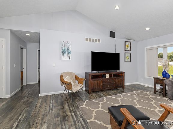 Welcome to this well-maintained 3 bed, 2 full bath home on 2.5 acres, offering both privacy and convenience. Built in 2017, this property features an almost 1-acre fenced backyard, perfect for pets or play. Step inside to an open living area with cathedral ceilings and solid surface countertops in the kitchen. The primary suite offers comfort and style, while the full walkout basement—with 9 ft ceilings, plumbing for a third bath, and easy finishing potential—adds incredible space and value. Enjoy a 2-stall attached garage, high-efficiency furnace, central air, rear deck, and a covered front porch. Located less than one mile from the high school, this home blends a quiet country feel with close-to-town amenities. Seller reserves the right to call for highest and best offer.