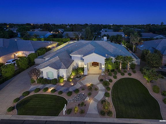 Custom Territorial designed home with stunning front and back-yard botanical gardens and pool in gated community of exclusive, custom homes over 3000 sq feet. Flat roof foam and covering in 2020. Back yard full kitchen and fireplace living room in COMPLETE Talavera tile which highlights new 500 sq feet outdoor luxury living space, 95% newly installed sunscreens, amid wildflowers and sports screens. New security system in 2021 and external security monitor cabana.