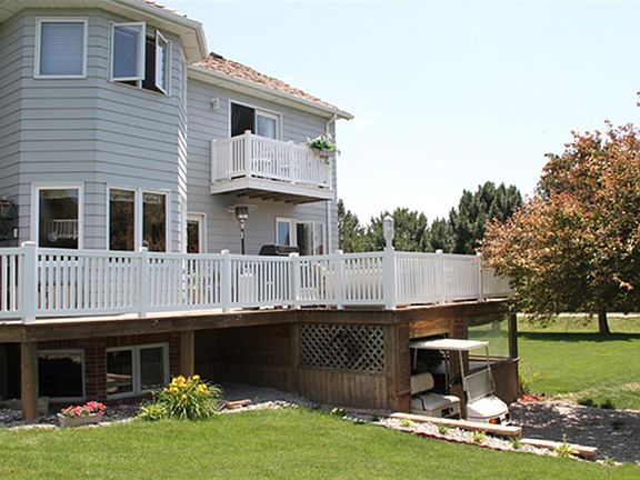 Custom built by Clausen Brothers Construction. Formal & casual areas on the main floor. A wall of windows overlooking the golf course. Ideal design for entertaining family & friends! Granite counter tops, updated fixtures, flooring & bathrooms. Master bath is especially nice with tile walk-in shower & jet tub. Built in cabinetry throughout. Finished walk-out lower level with family room, bonus/4th bedroom, full bath, party kitchen & walk-in wine cellar/storm shelter. Beautiful golf course view!