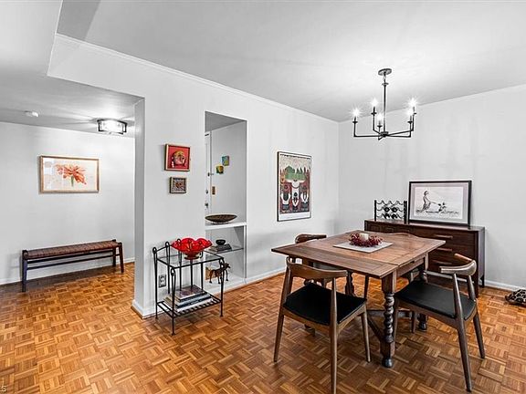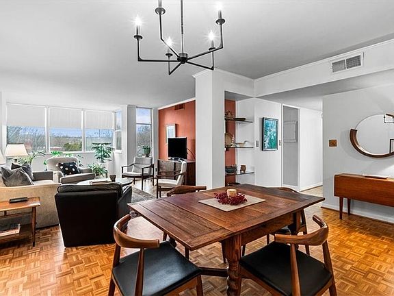 This beautiful West-facing, one-level Hampshire unit is one of the last remaining with three bedrooms, making it a must-see opportunity!Step into the foyer with built-in shelving and pristine original parquet flooring extending across the entire condominium.The stylish galley kitchen features sleek tile flooring,marble countertops,stainless steel appliances-including a refrigerator, smooth-surface cooktop stove with oven, dishwasher, built-in microwave, and disposal. Great natural light is in living and dining area, accented by built-in glass shelving.The primary suite offers a walk-in closet and an en-suite bathroom featuring a free-standing shower and an updated marble-topped vanity. A second bathroom features the same marble vanity and a tub. This community offers an array of amenities, including a pool, outdoor kitchen with herb garden, gym, courtyard with gazebo, business center, library, and an event space equipped with a catering kitchen, bar, and inviting lounge area.
