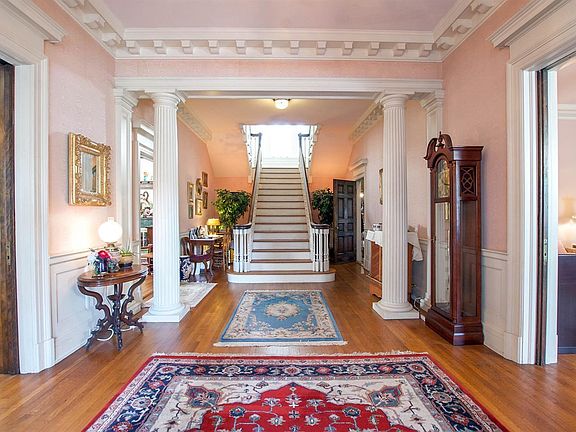 Historic home known as The Federal Crest Inn B & B- Designed in Georgian Revival style with grand central staircase, 7 fireplaces, all can be used with gas logs & not wood burning, 6 Bedrooms above grade, two 2nd floor bedrooms have sun rooms off of them, one includes a sitting room also creating a 3 room suite - Third floor has a full bath, bedroom and a room w/ a stage! - This room w/ stage and others create the ability to offer 4 BR suites - Basement w/ two additional terrace level bedrooms, 15 x 10 & 14 x 12, one of which has no window - Terrace also has an older kitchen area, not used for many years, desk / office area & full bath - Extra full side yard lot, carriage house / garage, lovely patio - Federal Crest is nestled on the highest point of Federal Hill and has housed many weddings, anniversaries, birthdays, etc.. - Business is not included at this price or in this price, price is for real estate only - Sellers will consider conveyance of business and some personal property.