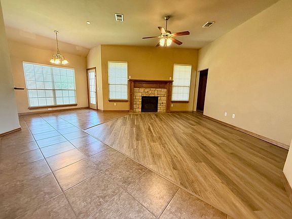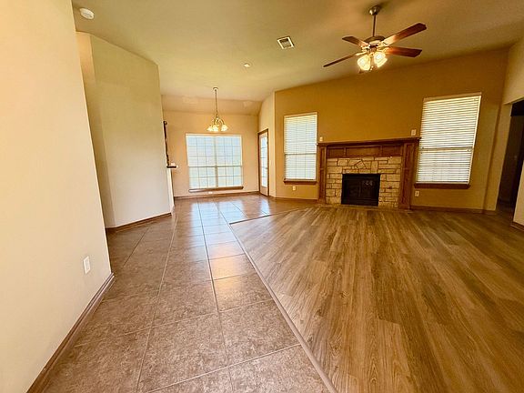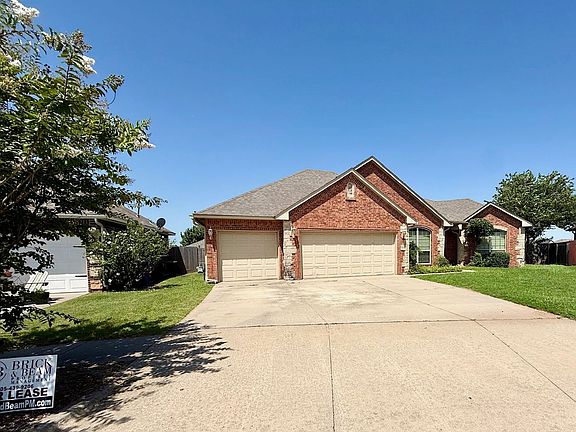 Available NOW! This beautiful home has 4 bedrooms. Two bathrooms and a rare 3 car garage. New luxury vinyl plank in living and bedrooms, ceramic tile in wet spaces with granite countertops in kitchen. Open living with high ceilings and gas fireplace. Crown molding - breakfast bar. Upgrades throughout. Kitchen has side-by-side refrigerator, microwave, freestanding electric smooth top stove, dishwasher & disposal. Washer and Dryer provided in the centrally located laundry room. Large master with huge master closet and master bath. Large backyard with privacy fencing. Neutral colors throughout. This wonderful home is in a great location - cul de sac neighborhood in Cobblestone West. Small to medium size dog with $450 non-refundable pet fee. Non-smoking environment.