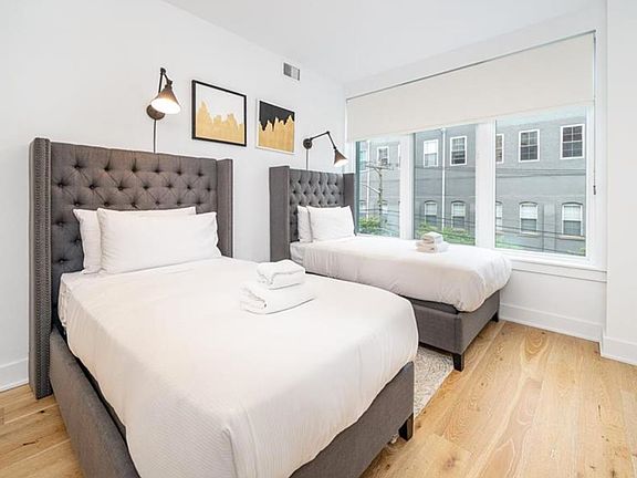 Amazing 2 bed 2 bath sprawling and bright unit facing Grand Street in Hoboken's only designer rentals with condo style finishes, real limestone facade and concrete slab between floors for virtual silence from above and below. With only 16 units, 1101 Grand offers you a pristine residence in an upscale urban environment. These thoughtfully designed layouts include 9 ft ceilings, full-size stacked washer and dryer as well as gas range. Conveniently located and developed with high end custom finishes, 1101 Grand is the place to be. Whether de-stressing in your comfortable and expansive living area, cooking for a dinner party in your new modern kitchen or entertaining on the rooftop, 1101 Grand has it all. Photos and room layouts are for finishes and marketing only- slight layout variations and details may vary NO CORPORATE LEASES /Air B and B One Tandem Parking option may available for an extra monthly fee at 1101 Grand. Avail March 1