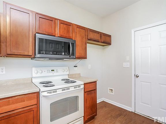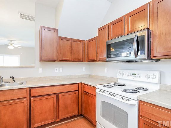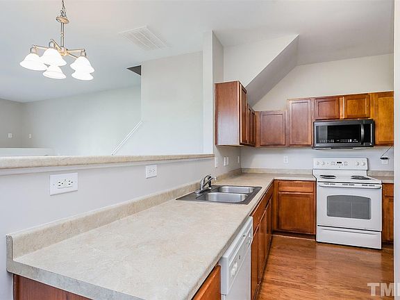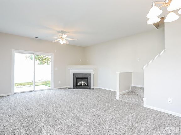 This Knightdale two-story offers hardwood flooring, a fireplace, and a one-car garage.