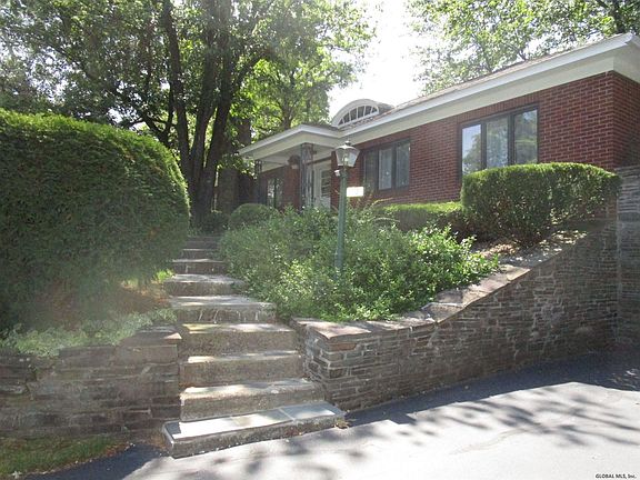 Wonderful 9/10 of an acre lot. Beautifully cared for brick executive Niskayuna ranch. Magnificent formal dining room with built in corner cabinets, stately living room with gas fireplace, comfortable kitchen with skylight, bright inviting foyer with double door entry way and sidelights, shinning hardwood floors throughout, 3 bedrooms filled with charm, gleaming first floor bath with a heated floor, ceramic tile and skylight. Two car attached garage, full walk out basement, with a finished bedroom, full bath, laundry room, work shop,And storage room. Great Kohler 20RESA whole house Generator System connected to National Grid gas line. Nicely landscaped yard with many perennials surrounding house and a lovely attached covered patio. Ask About 100% M.B.G.