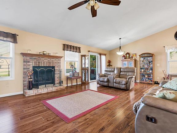 OPEN ranch with 3 spacious bedrooms & 3 full baths located adjacent to common ground in subdivision w/ 2 pools. Front door faces lake! VAULTED CEILING in Great Room has a cozy fireplace. WOOD kitchen cabinets, LUXURIOUS DARK GRANITE, stainless appliances, center island w/ extra storage, tile backsplash & PANTRY. Main floor laundry. EASY CARE Laminate floors span most of main floor including Large Master suite. Master suite has WALK-IN CLOSET w/ high end closet system, SOAKING TUB, separate shower, DUAL VANITIES, & ceramic tile. LEVEL FENCED YARD w/ COVERED PATIO for relaxing & entertaining. FINISHED LOWER LEVEL has Family Room/Home Theatre, Pool table, Surround Sound, 9 ft hand-crafted wood wet bar w/storage, fridge & sink, BASEBALL themed full bath, home office & storage! New HVAC 2018. Easy-care vinyl siding/soffit/fascia. Subdivision has 2 pools, 2 pavilions, fishing lake, playground, sports court, soccer field, walking trails & disc golf! Minutes to Highways 70, 64, 61 & 79! Suitable for Bed/Brk