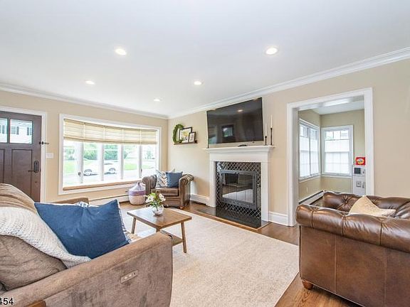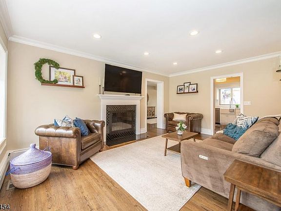 Expanded cape recently renovated for today's lifestyle! 4 bedroom 2.1 bath with open flow kitchen featuring marble countertops, SS appliances & wine fridge. Living room has a wood burning fireplace. Hardwood floors throughout the home and recently painted interior. First floor primary bedroom with en-suite showcasing double vanity along with over sized shower and his & her California closets. Second floor has 3 more bedrooms and a full bath. Finished lower level rec room, separate laundry and storage rooms with access to the backyard. Professionally landscaped exterior with large deck. Basement refrigerator & shed included.