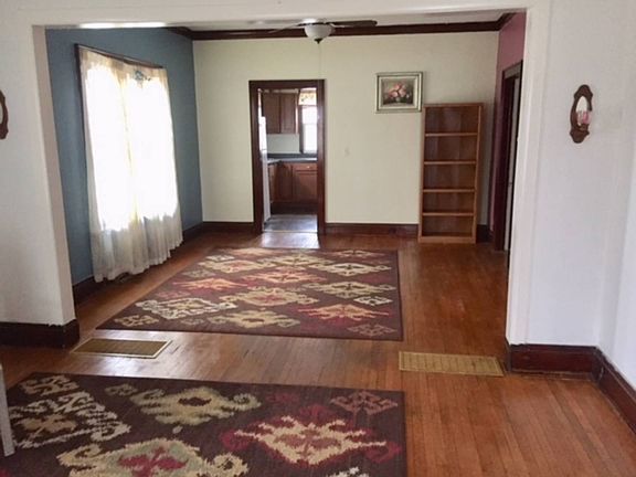 Living room is a very nice sized room. Natural hardwood flooring, painted walls, natural crown molding. Dining room is a nice sized room also. Painted walls, crown molding and hardwood flooring. Kitchen has oak cabinets and newer vinyl flooring. Bath has been redone a couple of years ago with tile and tub/shower combo. Bedrooms 1 & 2 are large with hardwood flooring, painted walls and natural crown molding. Full basement that could be a future thrid bedroom or family room. This house sits on a half lot. The furnace is newer, all new plumbing, new roof, and the electrical is all good.