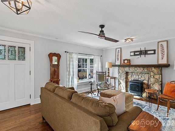 Discover this charming 1920s Craftsman Cottage, ideally situated on a spacious corner lot in Downtown Hendersonville. Enjoy walkability to shops, the Ecusta Trail, and Rhododendron Park. This home masterfully blends historic allure with modern updates, featuring an open floor plan, light-filled rooms, an updated kitchen with stainless appliances, & newly remodeled bathrooms. Hardwood floors, a gas stove fireplace, and a screened-in porch offer quiet evenings of relaxation. The primary bedroom boasts a sunny deck, a custom cedar closet, and a half bath. Recent upgrades include new gas logs, a water heater, custom dining room built-ins, & updated light fixtures. A fenced yard and a full unfinished basement with garage add convenience and storage. Experience the warmth of the living room, the charm of the dining room built-ins, & the ample basement storage. Immerse yourself in the comfort awaiting in this lovingly maintained home, steps from all that Downtown Hendersonville has to offer.