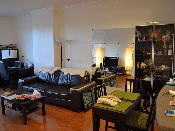 Bright 5th floor south facing unit close to Midtown's vibrant dining and entertainment district. Building is loaded with amenities: concierge, weight and cardio gyms, yoga studio, sauna and 2 pools (lap pool inside- large pool outside). Unit has beautiful hardwoods throughout and Kitchen is open to spacious Living/Dining Room combo. Newly renovated modern bathroom with granite vanity tops and shower/tub tiles. Lovely deck faces south and lots of green. Large Master Suite and Bath. Appliances and washer/dryer remain. Comes with 1 reserved covered parking space