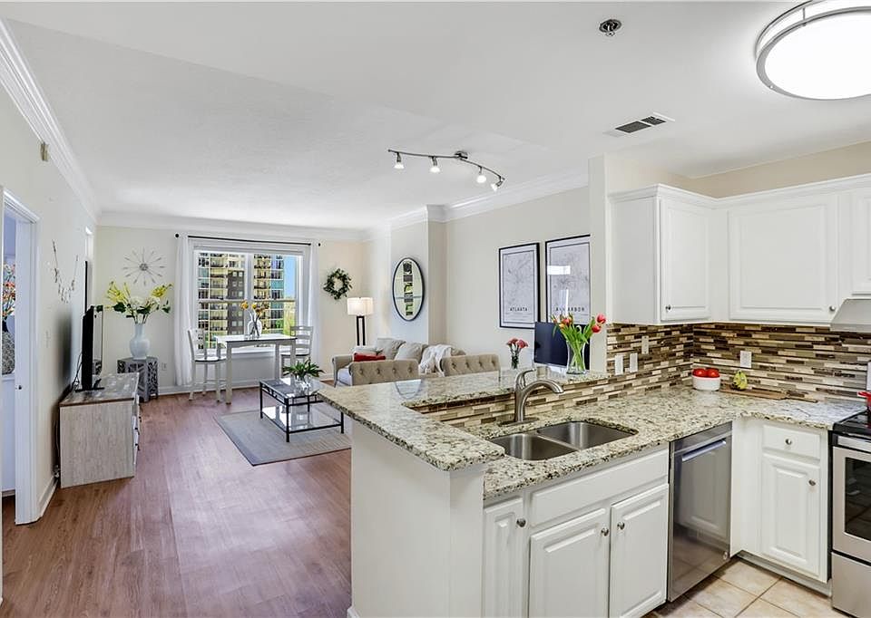 Modern Midtown Condo with Eastern Sunrise Views over Piedmont Park! Open Floor Plan Concept with a Well-Equipped Kitchen, Granite Breakfast Bar and Newer SS Appliances. New LVT Flooring in Living and Bedroom and New Paella Impervia Windows with Beautiful Molding. Laundry Closet in Bathroom with Newer Stackable Samsung Washer and Dryer Included. New Trane HVAC Thin Low Profile Unit. East Facing Walk-Out Patio with Partial Piedmont Park and Midtown Views. Unit Located Close to Elevators with Access to the Lobby and the 1 Deeded Covered Parking Space on the Ground Floor. Community Features Renovated Hallways and Amazing Amenities Including a Panoramic Rooftop Terrace, Outdoor Pool, Grilling Area, Renovated Club Room, Dog Walk, Google Fiber, and more. Building Has a High-End Fitness Center with Cardio Room, Weight/Machine Room, Yoga/Boxing Studio, Saunas, and Unique Indoor Heated Lap Pool. Fully Renovated One Bedroom Guest Suite with Dedicated Parking Spot. Seasoned Full-Time Onsite Management and 24-hour Concierge Service. Just Steps Away from Piedmont Park, Public Transport, and All of the Desirable Shopping, Dining, and Entertainment Options Midtown Has to Offer!