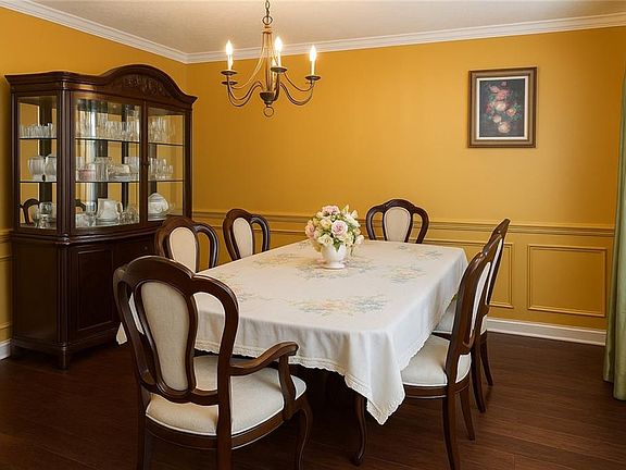 Crown moldingSeparate showerCorner lotSoaker tubWainscoting in dining room