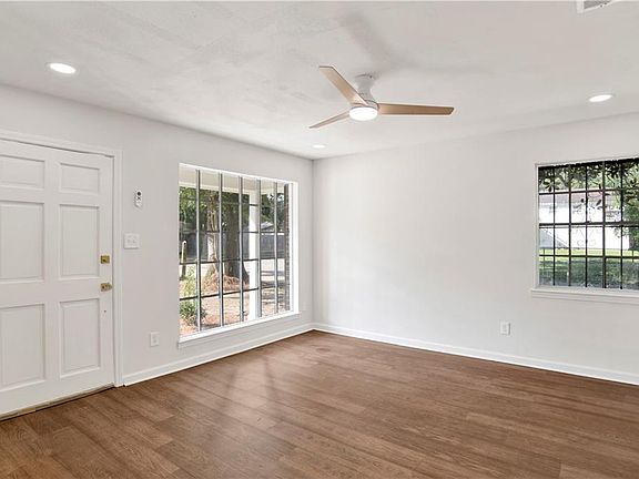Welcome home to this move-in ready charmer! This home offers a spacious driveway and welcoming front porch perfect for relaxing afternoons. Inside you’ll find a cozy living room with beautiful vinyl flooring and plenty of natural light from the windows. The kitchen features wood-stained cabinetry, stunning countertops, an electric stove, and a breakfast area for casual dining. Down the hall, all bedrooms include new carpet. The primary suite offers a full bath with a tub/shower combo and elegant gold-tone finishes. Additional features include a laundry room with custom built-ins, a partially fenced backyard, and numerous updates throughout. This one is full of charm and ready for new owners! (NEW ROOF)