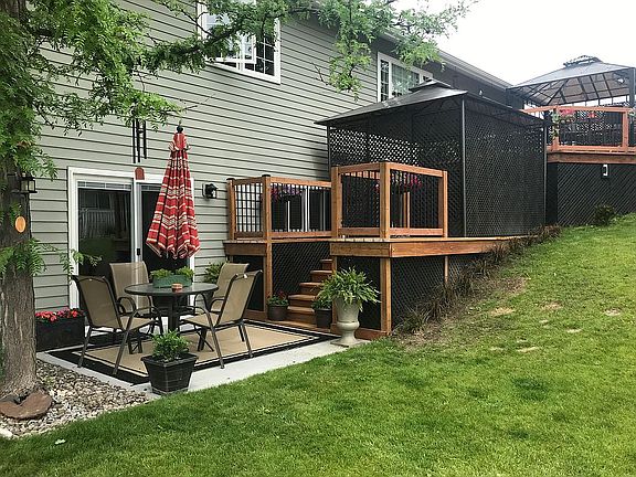Great home with spacious open layout up & down stairs. Main floor: 3 bedrooms, 2 remodeled full bathrooms, island in kitchen, sliding glass doors in dining area to outside deck. Walk-out basement features open living including: 2nd kitchen with new appliances and freshly painted cupboards, remodeled bathroom and two bonus rooms used for choice of homeowner. Brand new central air, new carpet throughout basement, custom built blinds, security system and two car attached garage.