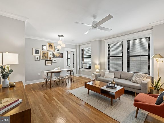 Stunning Fully Renovated 2 Bedroom, 2 Bath + Den Condo with EV Parking in Prime Downtown Location! Welcome to Wisteria Mansion, where elegance meets convenience in this impeccably renovated (2020) 2-bedroom, 2-bathroom condo with a rare bonus: dedicated parking with 240V outlet for EV charging. This sophisticated residence also features a versatile den—ideal as a home office, reading nook, or nursery—framed by glass French doors and a transom window. The chef’s kitchen is a showstopper, equipped with quartz countertops and high-end stainless-steel appliances, including a Fisher & Paykel refrigerator and an energy-efficient Café induction range with double oven. The open living area is enhanced by custom-built entryway cabinets, crown molding, and new hardwood floors throughout. The sunlit primary suite features a spacious layout and an en suite bath with a luxurious double rain shower. The second bedroom is generously sized with treetop views and easy access to the stylish hall bath. Located in a secure, elevator building neighboring the Convention Center, this home is central to all Metro lines via McPherson Square, Metro Center, and Mount Vernon Square stations. The premier dining, shopping, entertainment, and nightlife of CityCenterDC, the Verizon Center, Blagden Alley, Logan Circle, and 14th St. are just steps away. With a Walk Score of 99, this is city living at its finest! Sqft is 1,015 per Seller's original appraisal.